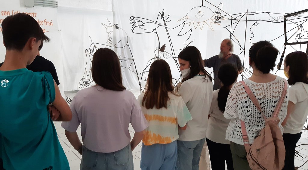 Il progetto prevede che l’opera sia itinerante, fermandosi in ogni scuola che voglia ospitarla, in modo da far interagire gli studenti con i suoi pieni e vuoti, e che la scuola possa diventare luogo di vita dell’arte.